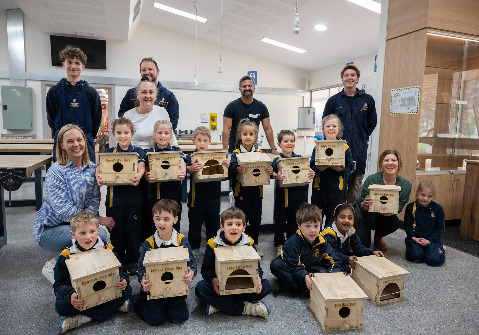 As part of our Unit of Inquiry into 'How the World Works', Reception students from St Peters Campus recently visited the Concordia Campus for a hands-on learning experience that combined science, design, construction and environmental care. Their exploration of local animals and how we care for them inspired a collaborative project with Mr Beitz and the Design, Technology and Engineering team—building bird boxes for native birds.