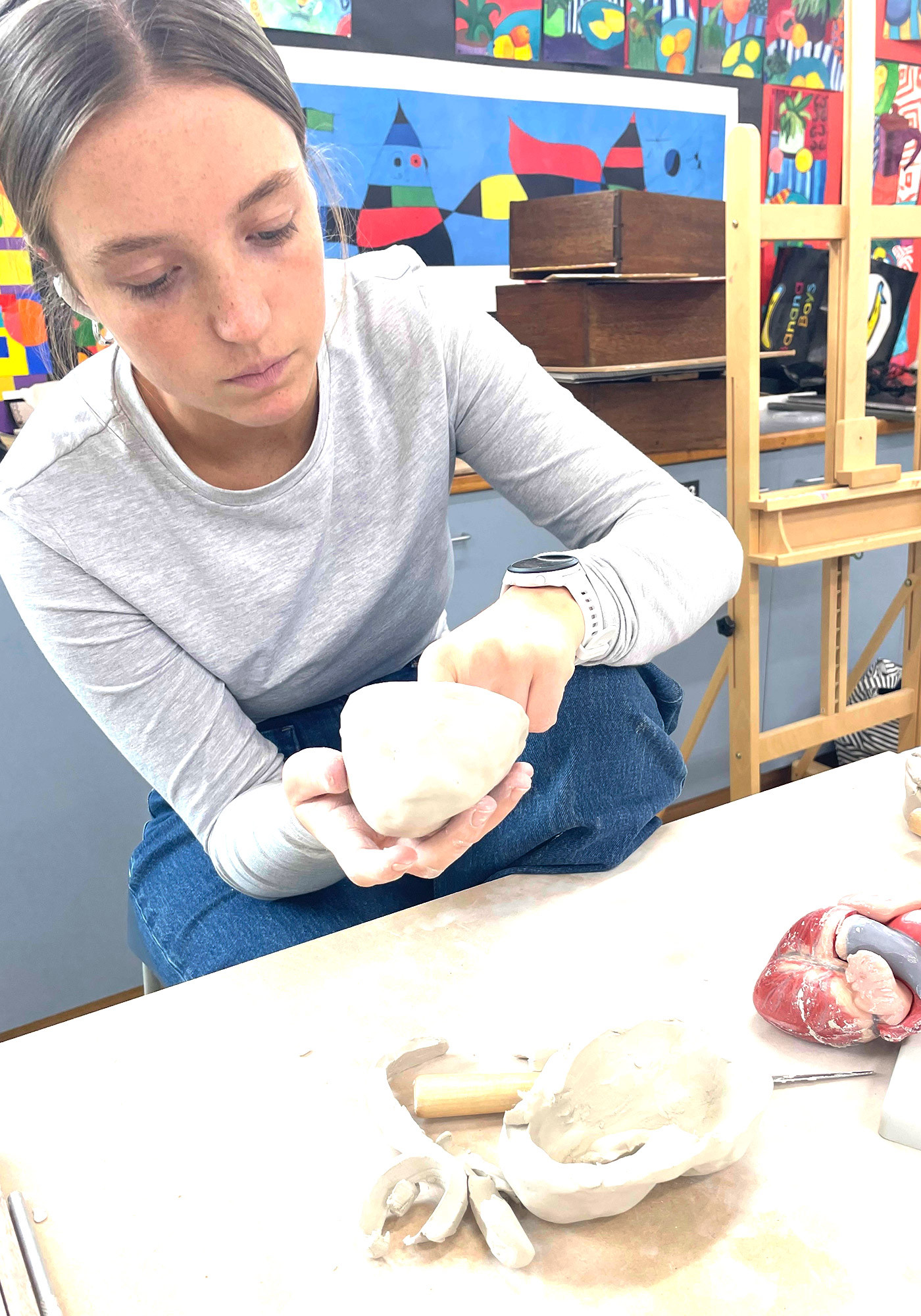 Our Year 12 Visual Art and Creative Art students are in the final phase of completing their major practical works. Hence, the Visual Art Department has been turned into a busy hub with students undertaking extra studio time, making concerted efforts and remaining dedicated to their best skills and efforts. Their works highlight a diverse use of artistic media: painting, mixed media, photography, sculpture, textiles and digital art. Their work shows clear concepts with particular themes, including personal and gender issues.