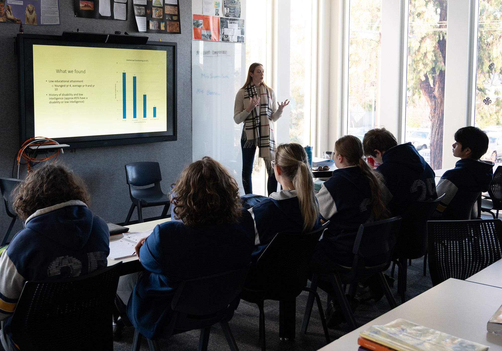 On Thursday of Week 8, Term 2, the Stage 2 Legal Studies class welcomed guest presenter Emma Brew-Bevan. Emma (Class of 2018) is a lecturer, PhD candidate and research assistant in Criminology at Flinders University. Emma spoke about her research regarding women serving time in custody, and how and why particular minority groups are over-represented in the criminal justice system. As the class has recently been learning about diverse groups and their access to justice, Emma's presentation was highly relevant. Emma also outlined types of criminology-related degrees and careers that were open to students following Year 12, and provided useful insights and suggestions for students researching criminal justice-related topics for their Inquiry. We are very appreciative of the time that Emma took to share her knowledge and experience with us.