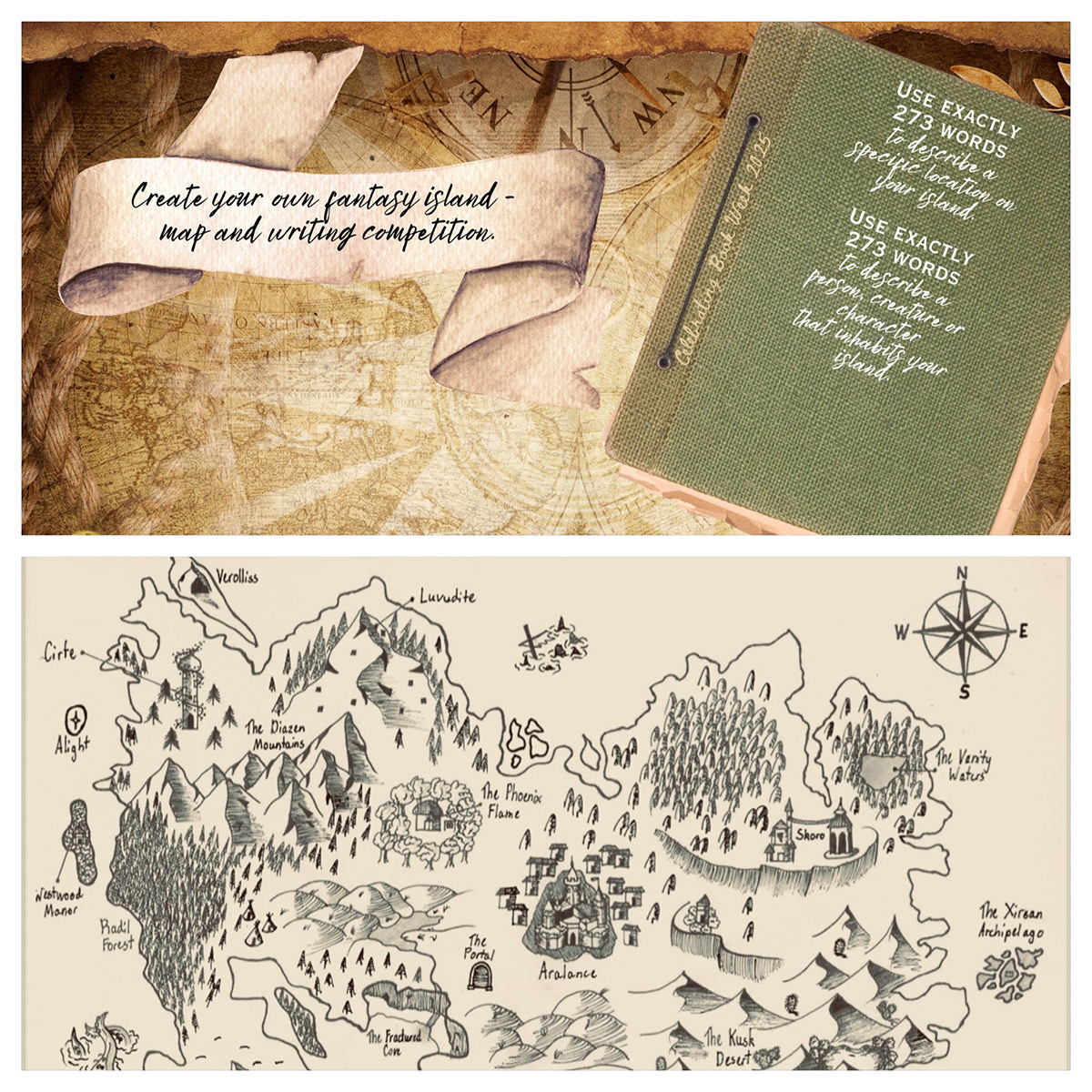 The adventure doesn’t stop there… We have invited Year 7 and 8 students to set sail on their own Fantasy Map Creation Quest. The challenge: to dream up a magical island and bring it to life in creative writing, describing characters and landscapes from their island. The most enchanting maps and tales will be sent off to an interschool competition, where treasure (in the form of prizes) awaits the winners. To help guide the way, one of our own Book Council members has sketched a fantasy map to inspire brave cartographers. It is pictured here.