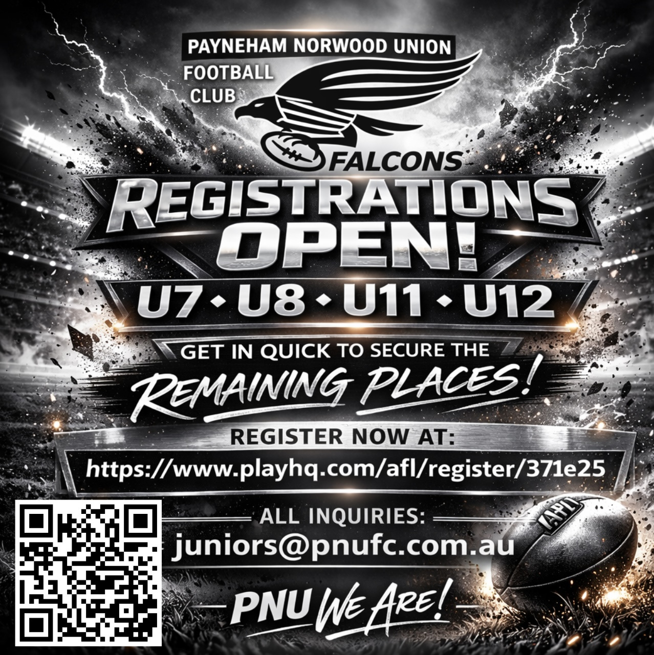 - Payneham Norwood Union Football Club is inviting registrations for U7, U8, U11 and U12. Places are limited. Download a flyer for more information.