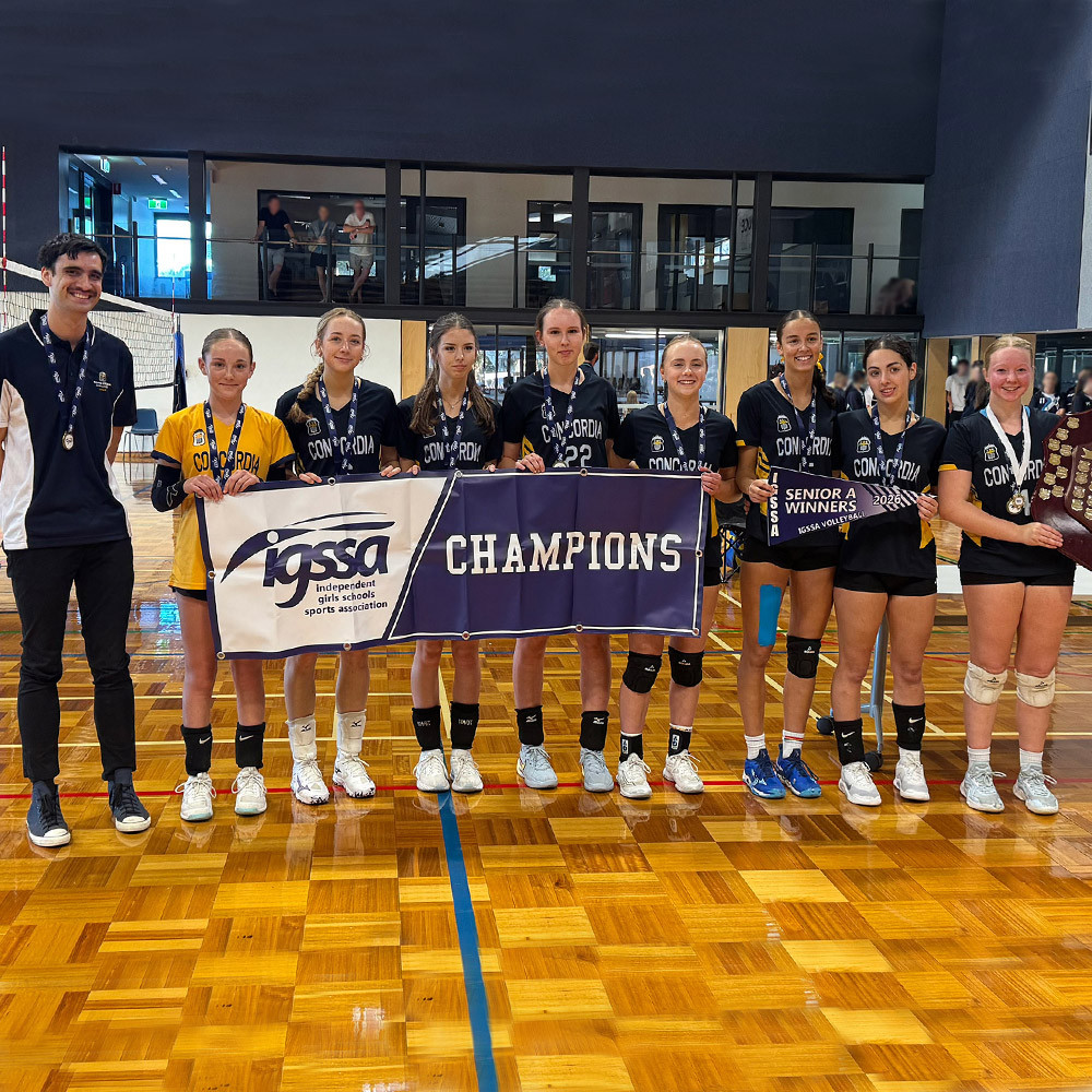Having made the grand final after an exciting season of volleyball, Concordia’s Senior A team competed for the Independent Girls Schools Sports Association (IGSSA) Championship on Saturday 21 March. After somewhat of a slow start, which saw them trailing 4–7, the girls settled into the match and took the lead. Once they were in front of the opposition, they didn’t look back, winning the match in straight sets: 25–20 and 25–18. Congratulations to all involved in an outstanding summer season of volleyball and a wonderful final result—finishing as IGSSA Champions.